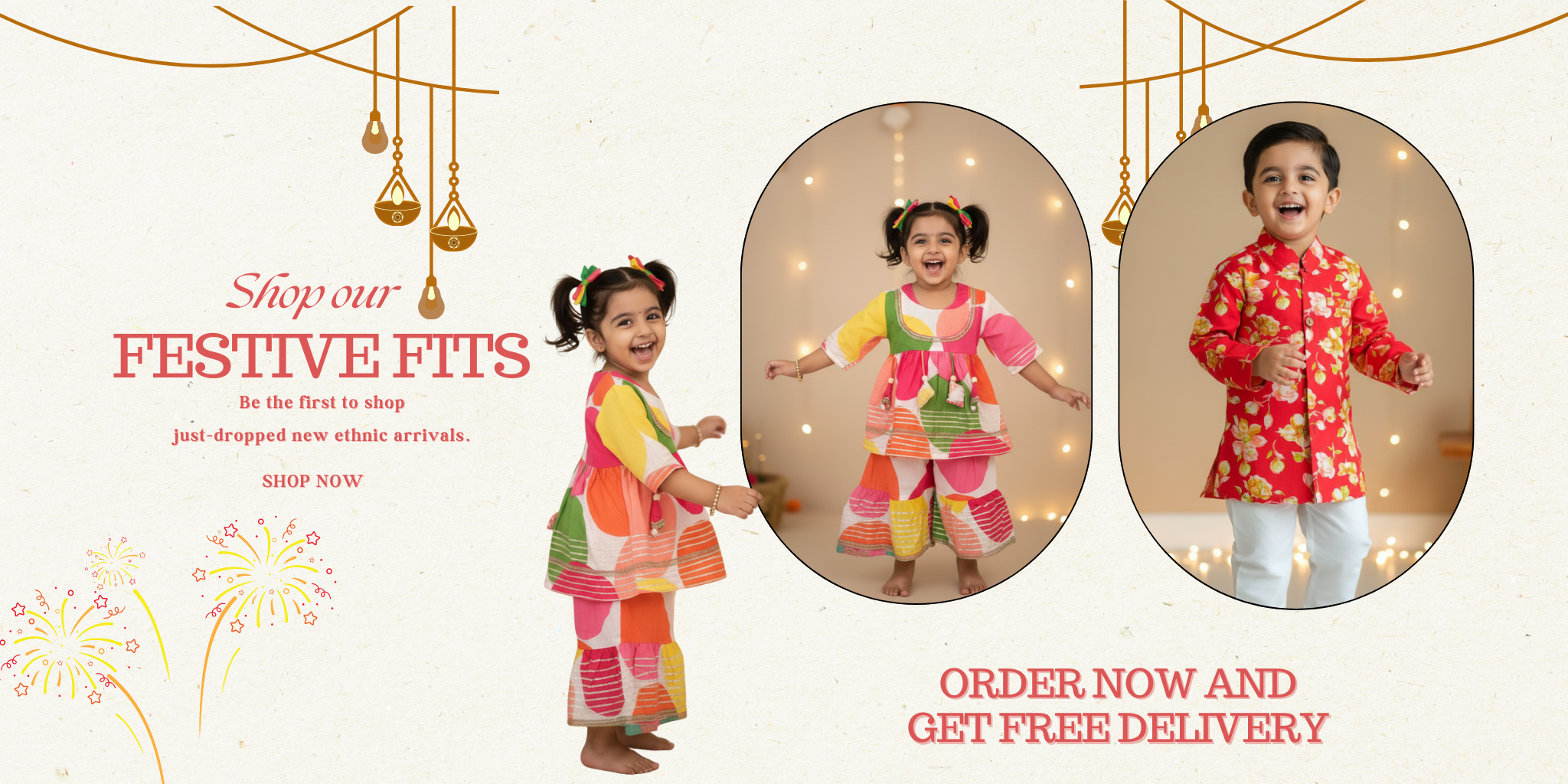 Girls Beige Coral Charm Cotton Kurta Sharara Set- Ethnicwear | SnugBug