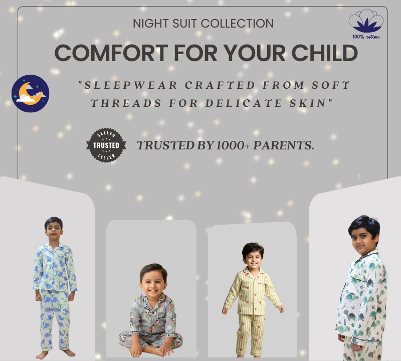 DreamyHearts Kids Pure Cotton Full Sleeve Night Suit Set | SnugBug